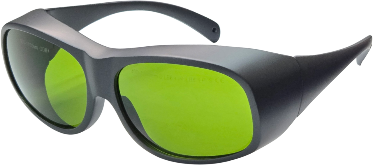 強力な反射光・散乱光から眼を保護するOD8(Optical Density 8)対応のレーザー保護メガネです。